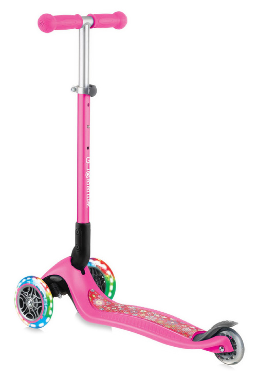 Самокат Globber PRIMO FOLDABLE FANTASY LIGHTS — отличный выбор для маленьких любителей активного отдыха. Инновационный дизайн с продуманными деталями позволяют ребёнку быстро и безопасно освоить передвижение, научиться легко удерживать равновесие. Три колеса, крепкая и низкая дека с подставой для ног гарантируют малышу стабильность и комфорт. Система блокировки колес и усилитель руля дают возможность постепенно обучаться поворотам. Простая регулировка руля по высоте увеличит срок эксплуатации в зависимости от темпа роста ребенка. Качественные комплектующие позволяют этой модели быть неприхотливой к условиям погоды и маршрута. Интересный и яркий стиль в сочетании с легкостью управления мотивирует к новым впечатлениям. Самокат со светящимися колёсами несомненно понравится вашему ребёнку, а вас порадует тем, что благодаря этим самым колёсам ребёнка легче заметить. В этой модели привлекает все — от удобства посадки и безопасности до яркого дизайна и цены.
