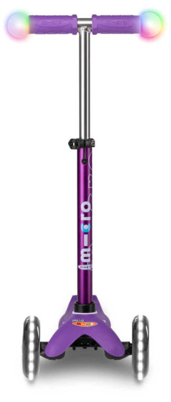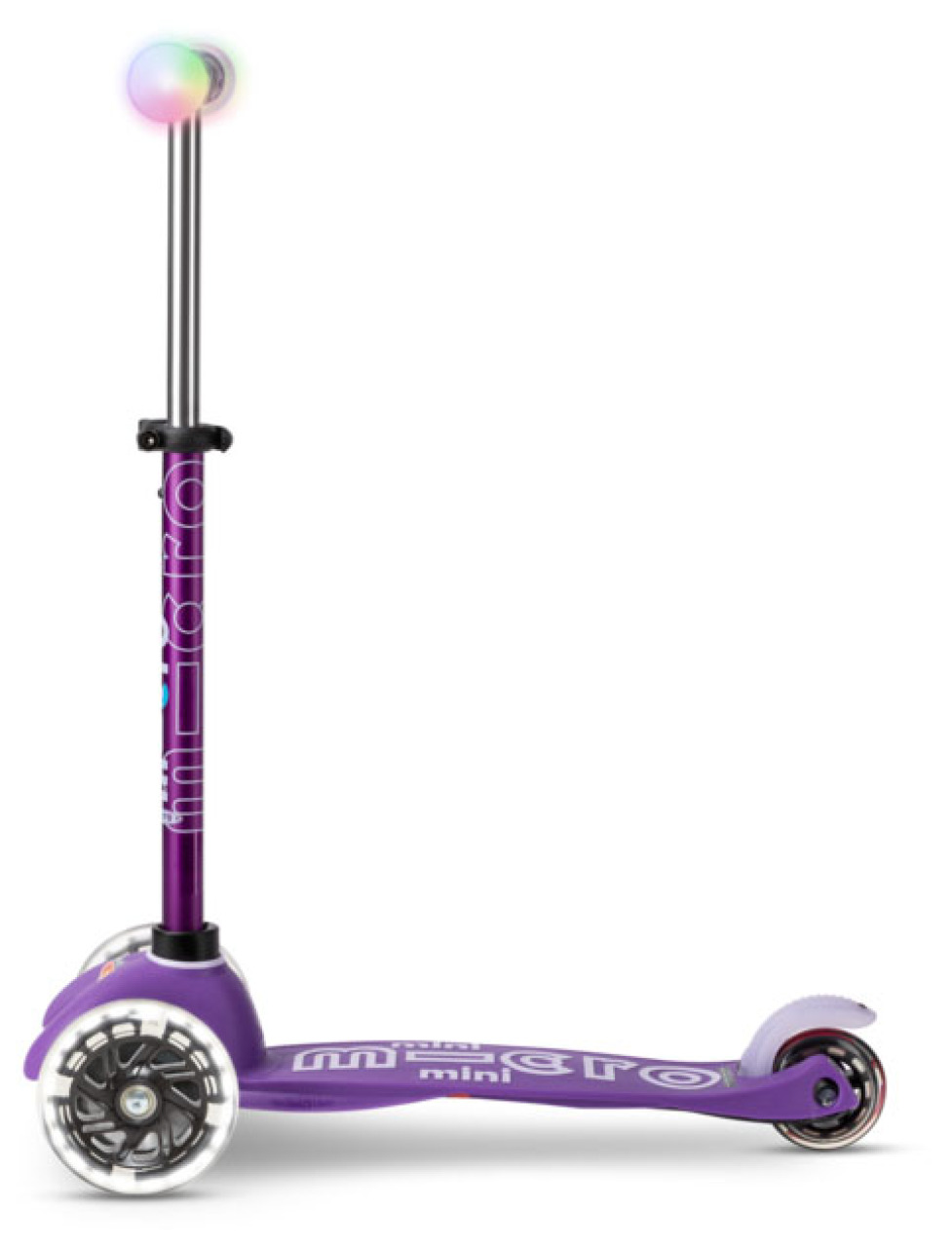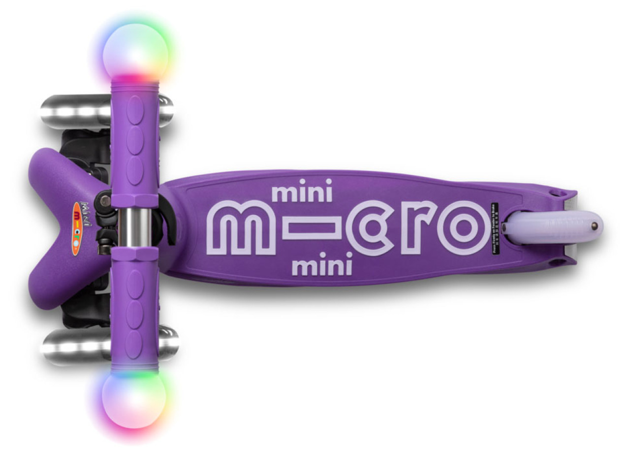 Micro Mini Deluxe Magic LED — волшебство на колесах для ваших малышей! Возможность настройки высоты руля под рост ребенка делает самокат универсальным и долговечным решением. Платформа выполнена из высококачественных материалов, выдерживающих активные игры и длительное использование. Ребенок управляет самокатом, наклоняя руль в нужную сторону, что способствует развитию чувства равновесия и координации. Светодиодная подсветка колес активируется при движении, меняя цвета и создавая невероятный визуальный эффект. Подсветка работает от кинетической энергии, что устраняет необходимость в батарейках.