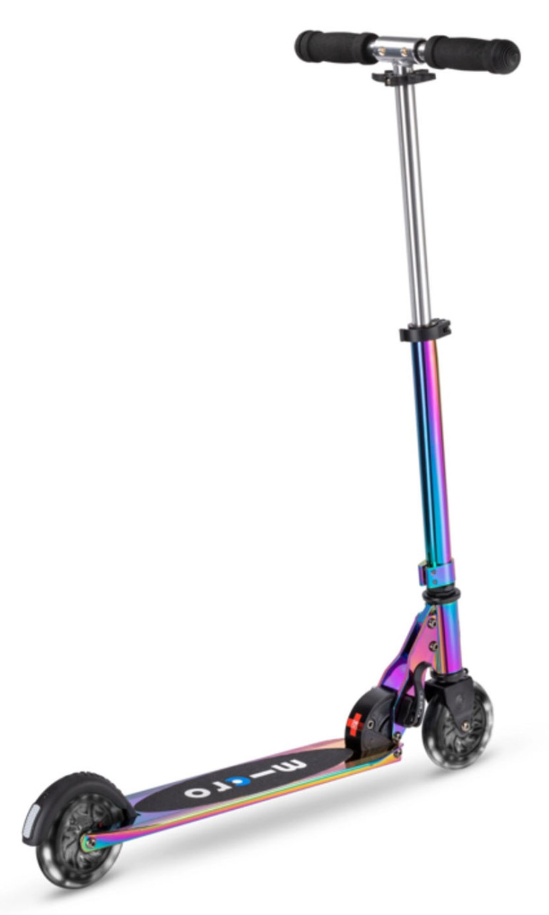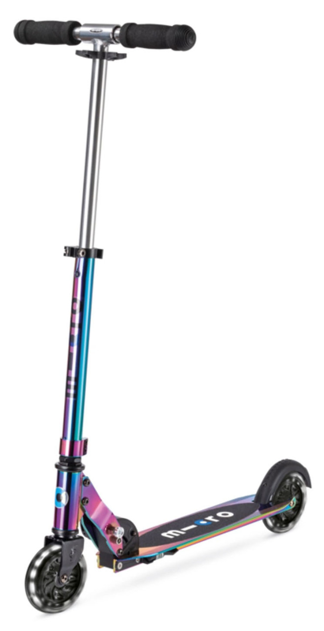 Самокат Micro Sprite Neochrome LED — яркая и стильная модель для детей и подростков! Micro Sprite Neochrome LED — это современное решение для тех, кто ищет удобное и надежное средство передвижения по городу. Этот самокат выделяется своим уникальным дизайном и функциональностью, что делает его идеальным выбором для повседневных поездок и активного отдыха. Неоновый хромированный корпус, привлекательная отделка с эффектом металлик и градиентной окраской придает самокату стильный и футуристический внешний вид. Яркая подсветка активируется при движении, добавляя динамики и безопасности вашему путешествию. Свет меняется в зависимости от скорости и направления вращения колес, создавая впечатляющий визуальный эффект. Высококачественные полиуретановые колеса диаметром 120 мм спереди и 100 мм сзади, обеспечивают плавное и стабильное движение по различным поверхностям, включая асфальт, бетон и тротуарные плитки. Регулируемая высота руля позволяет настроить самокат под любой рост, что делает его комфортным для широкого круга пользователей.