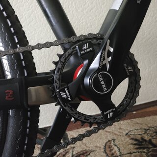 Звезда, которая разрабатывалась для использования без каких-либо цепегасителей. И это действительно возможно благодаря переменной толщине её зубьев – более толстые зубья попадают в широкие звенья цепи, а более тонкие – в узкие, за счёт чего цепь намного лучше держится на звезде. Многочисленные испытания в реальных условиях доказали высокую эффективность данного технического решения. Звезда изготовлена из алюминиевого листа толщиной 4мм, так что её прочности хватит для любого стиля катания, включая даунхилл и дёрт-джампинг.